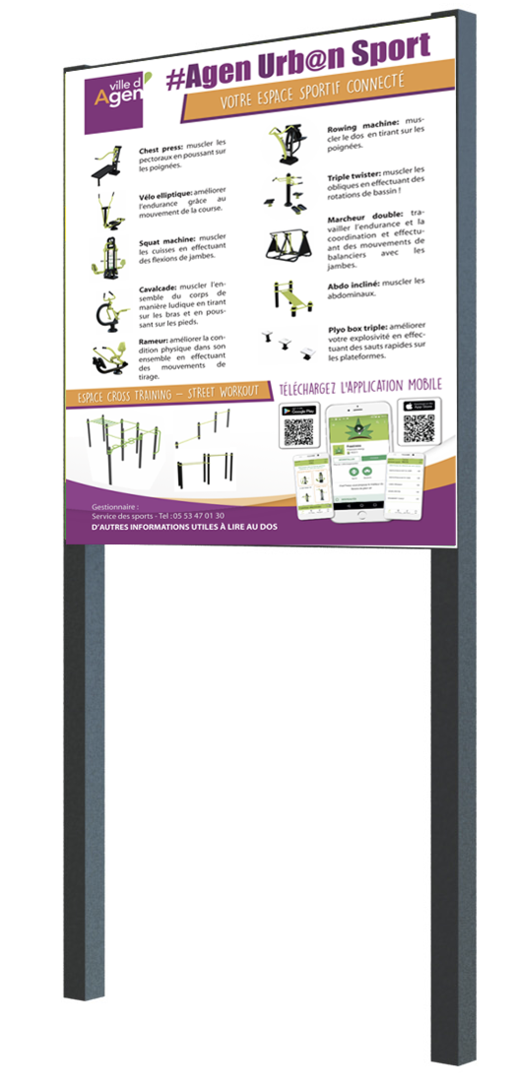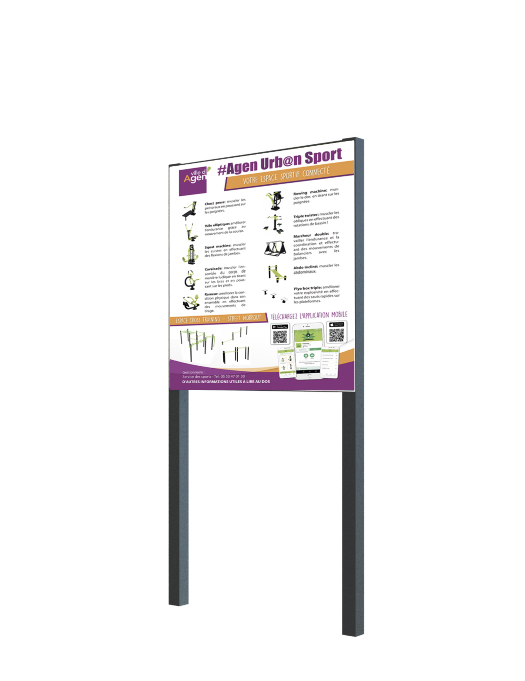 Panneau d'accueil, notice, circuit avec plan (parcours de santé)...nous créons en interne toutes vos demandes de personnalisation.