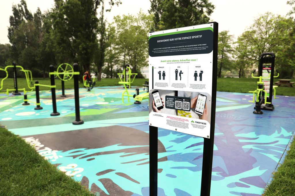 Faites personnaliser vos panneaux par nos services graphiques Freetness selon votre charte graphique pour pousser l’esthétisme de votre aire jusque dans les moindre détails. Panneau d’accueil et panneaux A4 sont modifiables selon vos demandes pour un design unique !